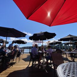 My first visit to this establishment was amazing. I found it very comfortable with great options on the menu. We sat outdoors on the deck. They have live performances and we were entertained by a gentleman who sang and played his guitar singing classic songs. It was not too loud as all 4 of us in my party were able to converse. All the tables have some type of shade with parties of all sizes dining, drinking enjoying the beautiful evening. Highly recommend for cocktails. Everyone tried a specialty drink with The Perfect Pear winning. The drink is smooth great taste. The others were not bad as I had the Princess Peach. We had browsed the menu previous to our visit. It saves time when you check out the website before hand. Appetizers we ordered the seafood stuffed mushroom. It was good, the mushroom stood out it was cooked perfectly the stuffing was not really seafood tasting but rather tastes like a hint of seafood with the cheese on top melted. They use real butter as I could taste the creaminess. We also had the chicken kabobs - good with the peanut sauce. Food Seafood linguini 2 of us had the pleasure of enjoying our their was an ample amount of seafood good flavor. Salmon linguini was loaded with Salmon, also grade A meal. Clam linguini with several clams, hands down the linguini dishes were the "BEST". Only disappointment is that none of the linguica I dishes included any type of bread. Which would have been nice to absorb some of that wonderful tasty sauce. I will order a salad to accompany my meal next time. We also were not impressed with the chowder. We tried to identify the contents. Price point is high and worth the money service and ambience is nice really nice place -